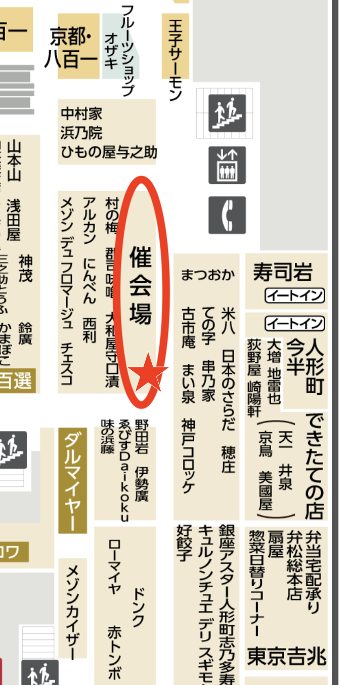 こちらから高島屋にお入りいただくと、一番奥側に地下1階の食料品催事場がございます。