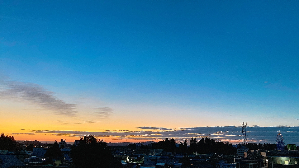 夜が明け始めていることに気づいたのは4時48分。一日の中で最も好きな時間は夜と朝のあいだにて、慌てて屋上へ上がる。朝の空は、すこし目を離しただけで著しく変わる。そのもっとも妙味のあるところを愛でようとすれば、ぐずぐずとはしていられないのだ。