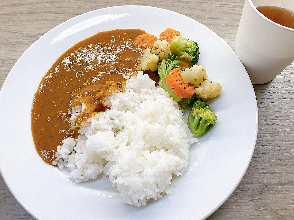晩飯 “Sky Lounge South”のカレーライス、ルイボスティー