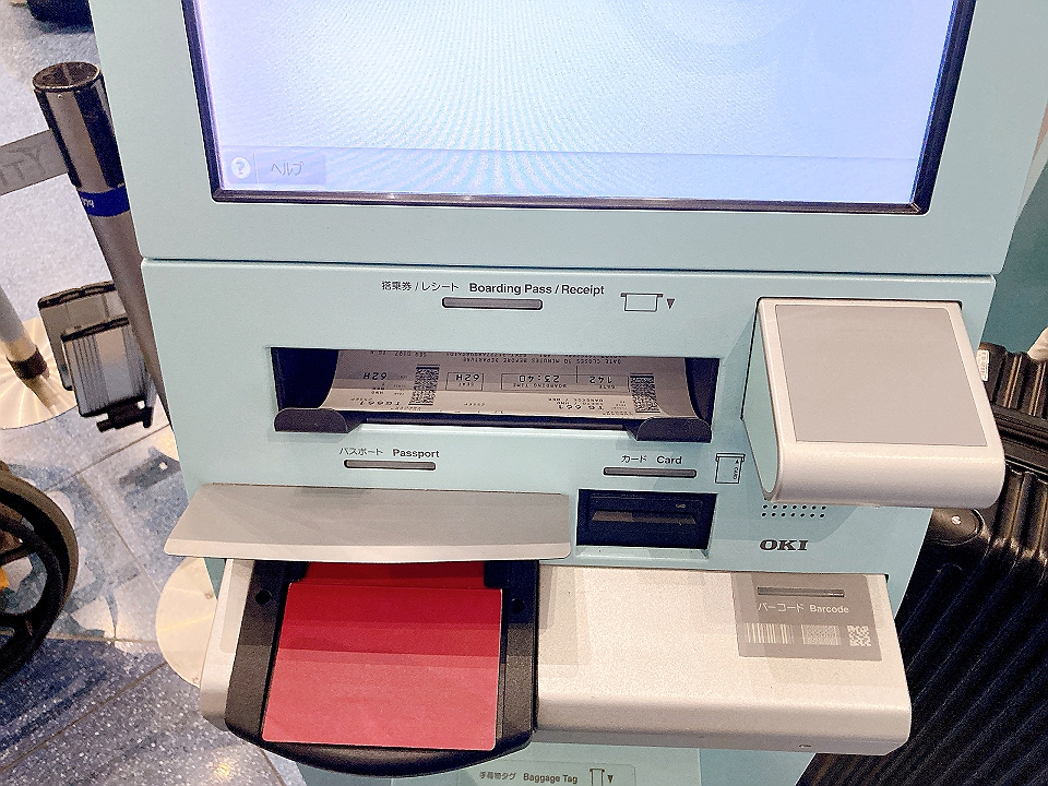 21:32 パスポートを自動チェックイン機にかざしてチェックインを完了。