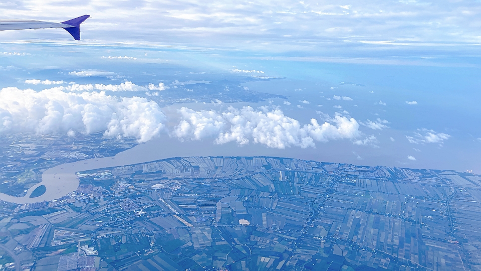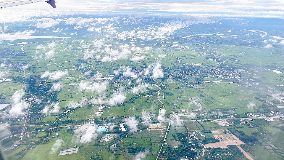 機は先ず左に旋回をして南へ下る。サムットプラーカーンやチャチューンサオの、シャム湾に接する場所のほとんどは、魚や海老の養殖池と思われる。