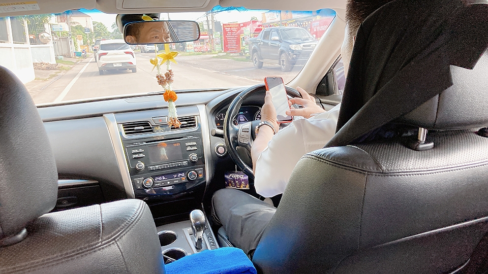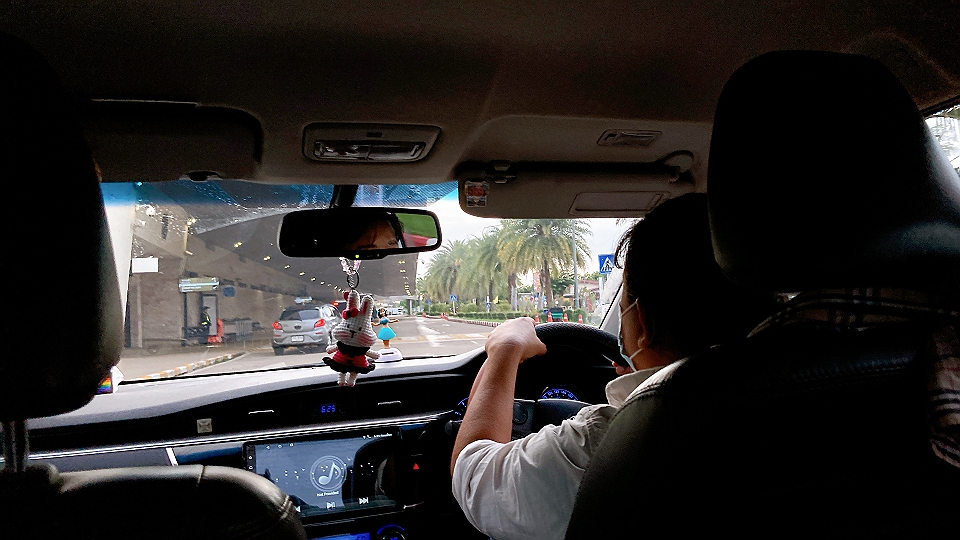 06:14 スーツケースは黄色いシャツのオジサンがトランクルームに載せてくれた。ベルボーイではないのでポケットに用意した20バーツのチップは渡さない。運転手は小さなオバサンだった。