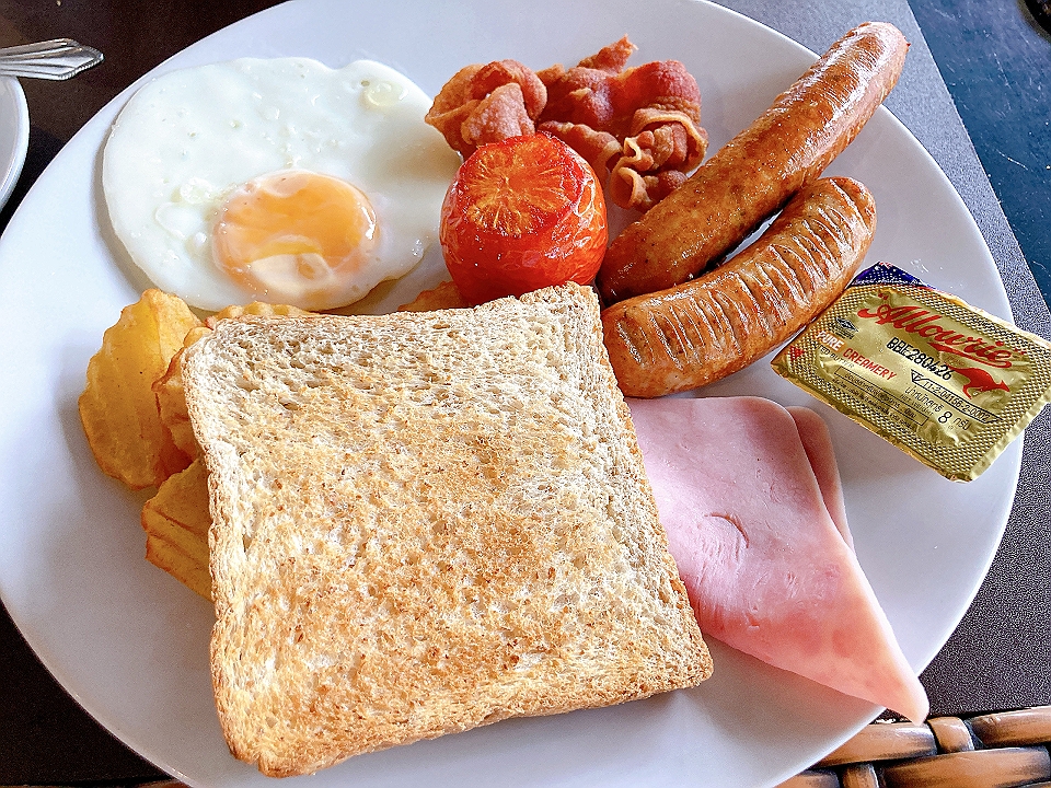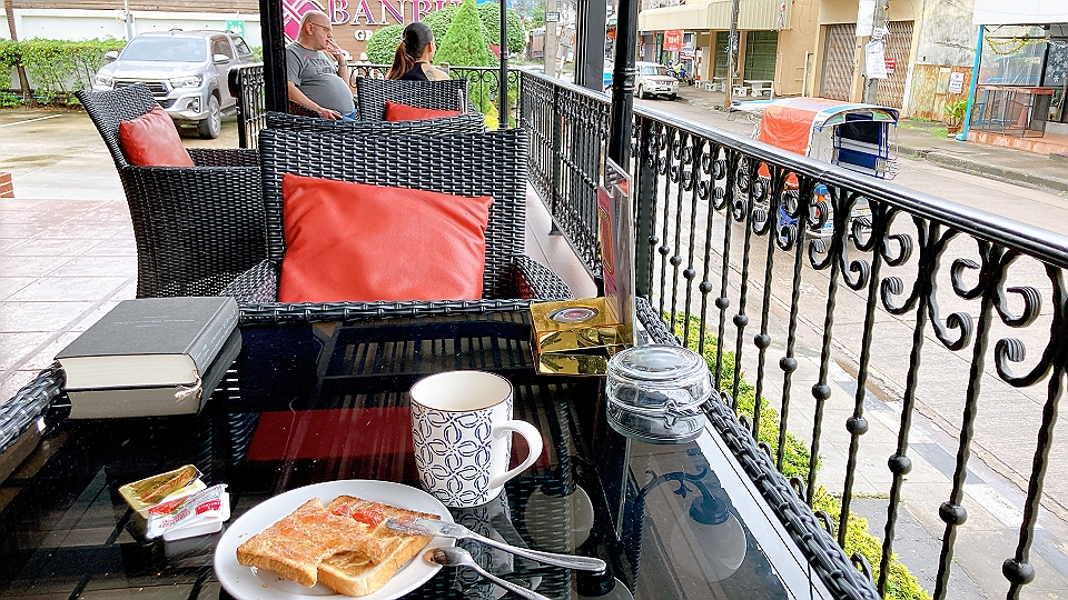 朝食はきのうに引き続いてホテル一階の食堂”BLUE SILK”で摂る。朝食代の295バーツは屋台のスープの実に12倍ではあるものの、本を読みながらのゆったりとした食事には、何とも言えないくつろぎがあるのだ。