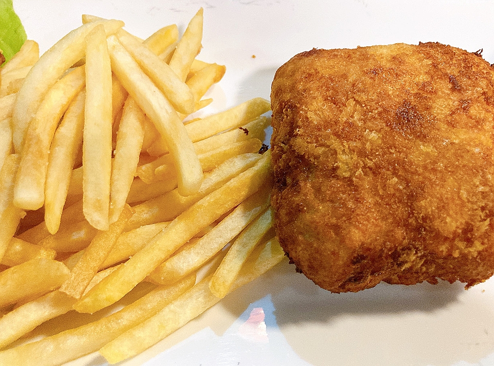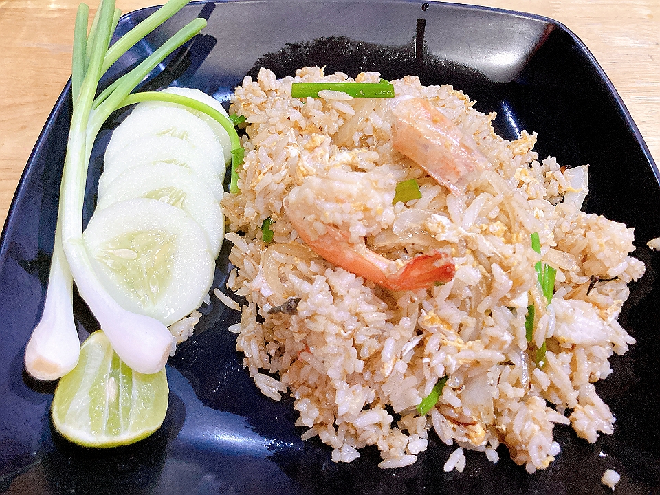 晩飯 “Je Huay Hoi Tod”の烏賊のトード、カオパット、ラオカーオ”TAWANDANG”(ソーダ割り)