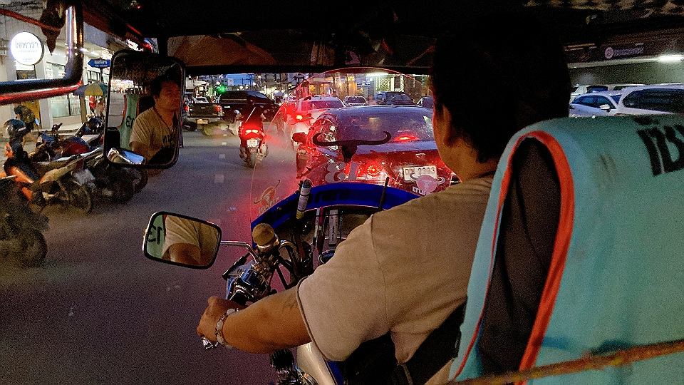 下調べのため、7時すぎにホテル前のソイサンパンミットに出てみる。客待ちのトゥクトゥクはいない。目抜き通りまで数分を歩けば道端に複数台が見られたものの、ホテルは6時30分には出たい。その時間にも彼らは路上にいるだろうか。何とも悩ましいところだ。