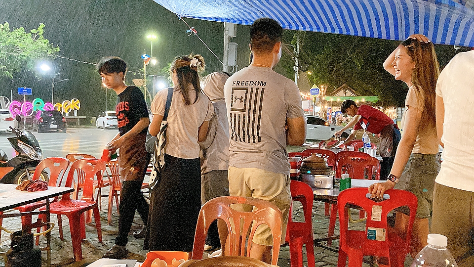 前回2020年3月に食べて美味かったホイトード屋は、驚くべきことに、今や英語と中国語に加えて日本語とハングルによるメニュまで揃えていた。しかし前にあったバケツ入りの氷はなぜか置かなくなっていた。そういう次第にてソフトドリンク用のクラッシュドアイスとプラスティック製のコップでラオカーオのソーダ割りを飲む。今夜の「トード」の中では特に烏賊が美味かった。