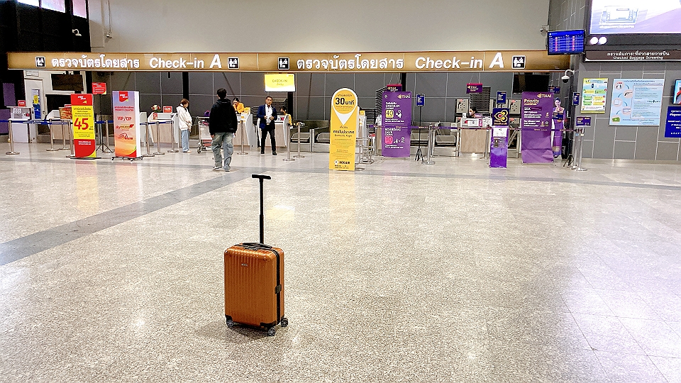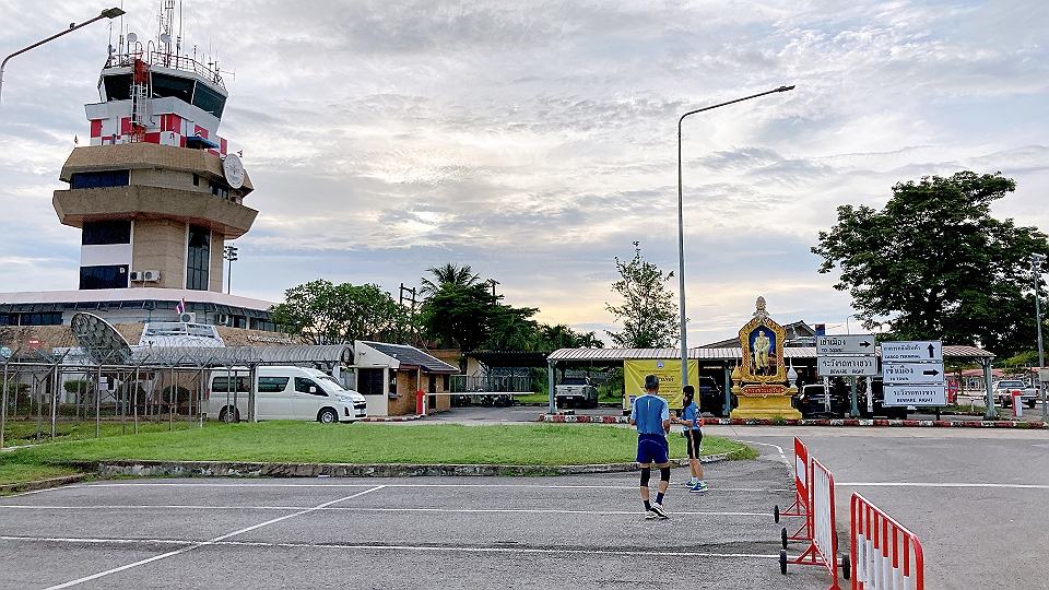 ノックエアとタイ航空のチェックインカウンターには、既にして人が着いていた。紫色の制服を身につけたタイ航空のオネーサンにチェックインの始まる時間を訊く。オネーサンは”Six fourty”とひと言のみの返事ではあったものの、マスクの上の目は三日月のように微笑んでいた。