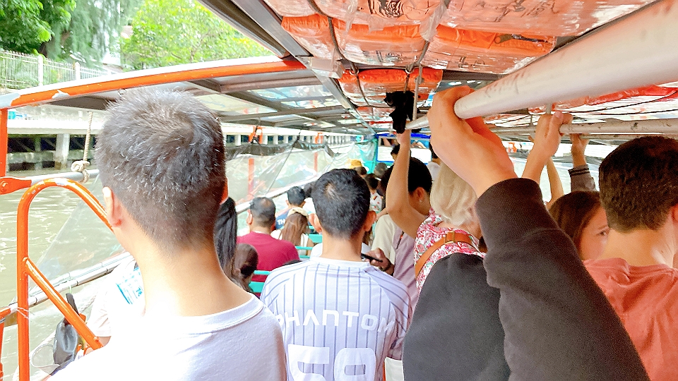 折り返しの舟に、人はいくらも乗っていない。近づいて来た料金徴収係に「駄目で元々」と、来るときに買った14バーツの切符を見せつつ「プラトゥーナム」と伝てみる。「あぁ」と彼は答えて、そのまま舟の後方へと去った。