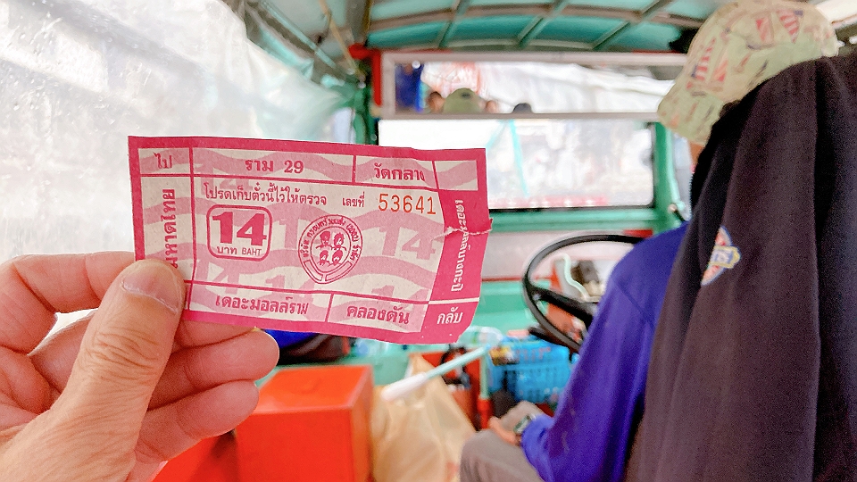料金は1,000バーツ札で支払う。大きなお札は釣銭の潤沢そうな場所で細かくしておくことが肝要だ。オネーサンは複写式の黄色い伝票を僕に手渡しながら、ちかくにいた運転手の一人に「バンブア」と告げた。