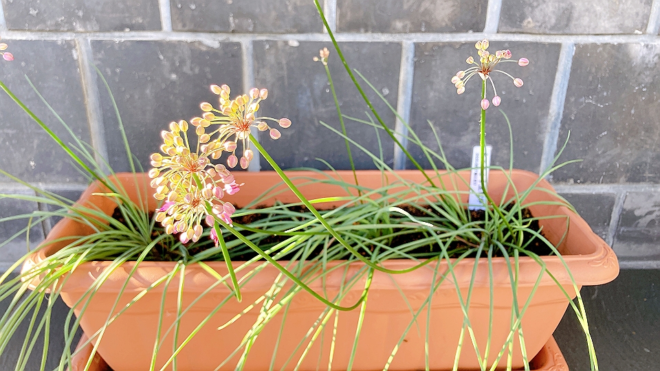 ところで店の犬走りには、この夏以来、日光の畑で収穫をされたらっきょうの一部が鉢に植えられ、育てられている。そのらっきょうの花が先月の下旬より咲き始め、このところは紫の色が濃くなってきた。畑のらっきょうは、施肥こそされても水は降る雨に任される。日照も、その年の気候に任される。庇の下に置かれてた鉢植えのらっきょうは、水こそジョウロで与えられているものの、果たして実を結んでくれるだろうか。