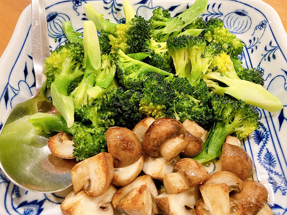 晩飯 レタスと人参のサラダ、ブロッコリーと三種のキノコのバターソテー、パン、チキンライス、シェパードパイ、Chablis Billaud Simon 2018