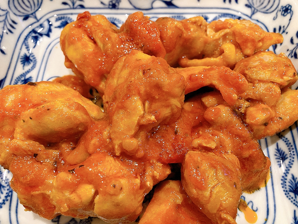 晩飯 トマトとアボカドとベビーリーフのサラダ、ウフマヨネーズ、ブロッコリーとマッシュルームのソテー、パン其の一、パン其の二、鶏のトマト煮、鶏のチーズ焼き、リンゴのジャム、Chablis Billaud Simon 2018