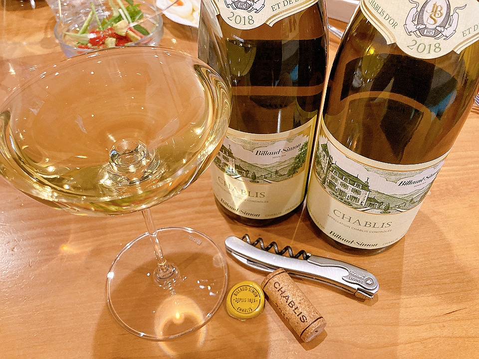 晩飯 トマトとベビーリーフのサラダ、パン、ポトフ、Chablis Billaud Simon 2018、チョコレート、Old Parr(生)