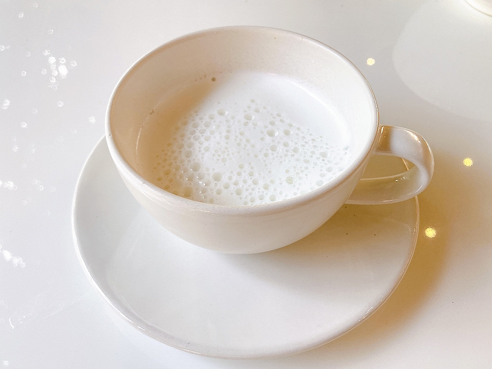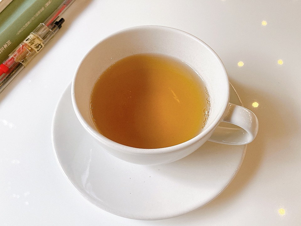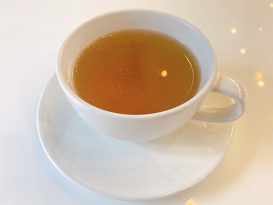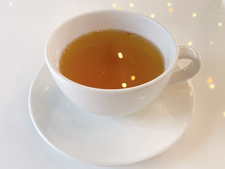 朝飯 “BLUE LAGOON HOTEL”の朝のブッフェの紅茶、お粥