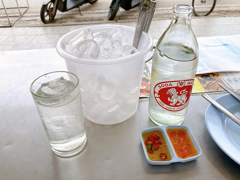 17時を前にして、初日の晡下に見つけた、本当に屋台らしい屋台の集まった場所、それはウドンタニーの駅に最も近い大きな交差点の北東の角であるけれど、そこへ出かける。慣れない場所に少しく緊張しつつ、目指す店に飲み物の冷蔵庫のあること、そこにソーダの置かれていることに気づく。近づいてきたオバサンは「すしざんまい」の木村清社長に似ていた。そのオバサンにソーダとバケツの氷、そしてグラスは使い捨てのプラスティック製ではなくガラス製のそれにするよう頼む。