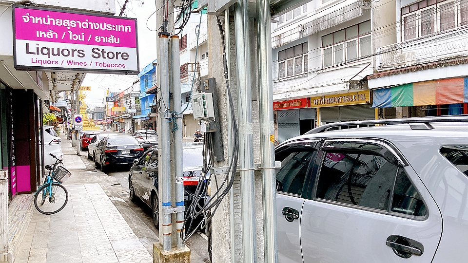 ウドンタニーではいつまでも見つけられないでいる貸し自転車が、この街にはいくらでもある。だから機動力を得ることができる。ジェットヨット通りから金色の時計台の前に出て、そこから北へ延びる道に入る。しばらく進んだ右手に、目指す酒屋は、ある。