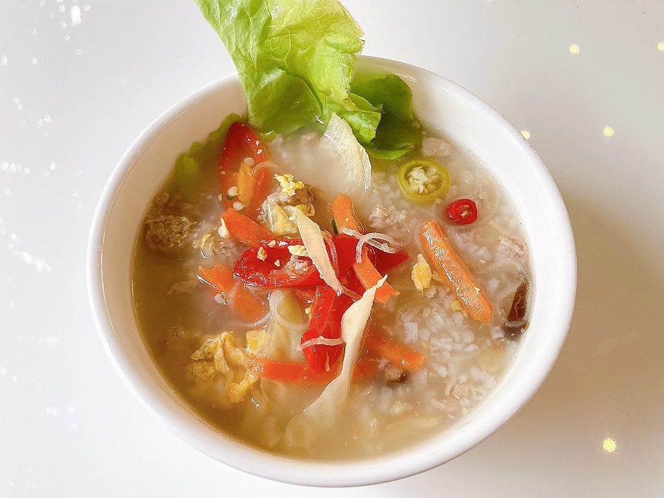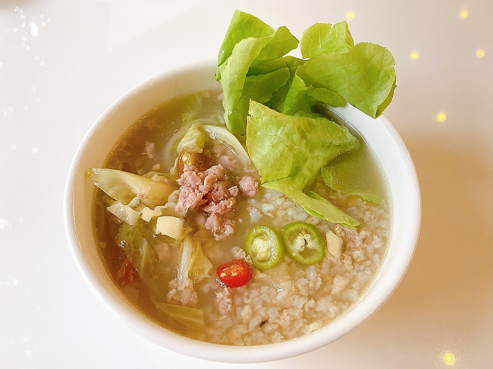 僕の顔を見知っているオニーチャンは、黙っていても、タイ語に中国語と英語を併記したメニュを持って来てくれる。今日はそのメニュにないモツ煮の有無を訊いてみた。元々がお粥屋であれば、それを置いている可能性が高いのだ。果たしてそれはすぐに席に運ばれた。