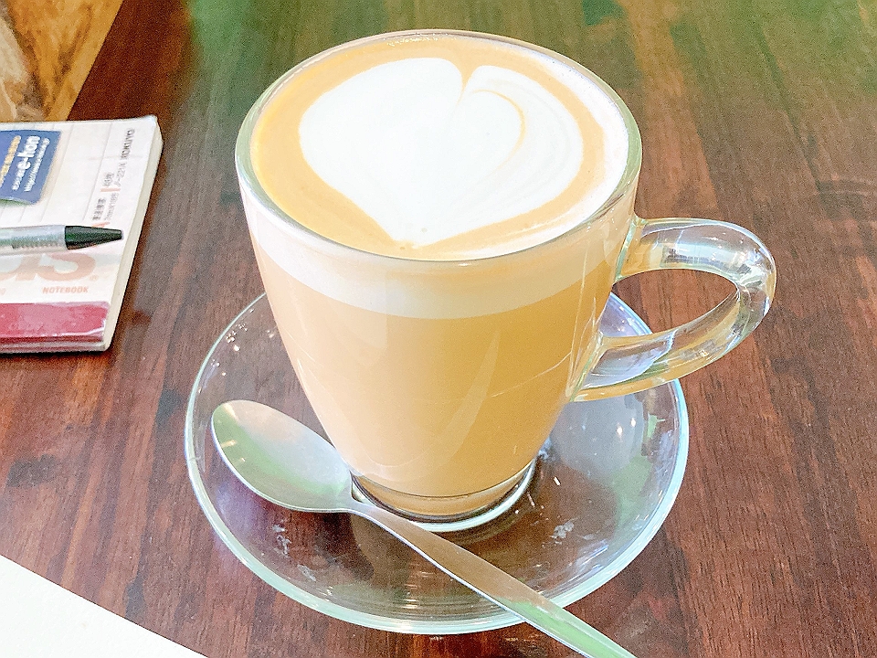朝飯 “Morning House”の中華ソーセージとベトナムソーセージを挟んだベトナムパン、カフェラテ