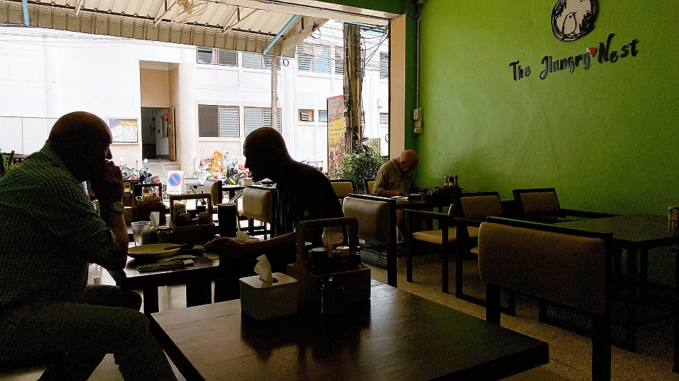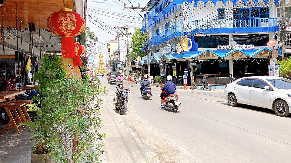 ところで。チェンライでは、朝にホテルで充分の朝食を摂ると、日の傾くころまで本を読み続けることができる。しかしこの街ではなぜか、昼が過ぎると微妙に腹が減ってくる。今日はカオマンガイが食べたい。しかしホテルの前の通りには白人相手のレストランが並ぶばかりで、タイの軽食を出す店は無い。