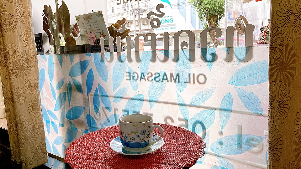 13:52 LINEにて14時に予約をしておいたマッサージ屋”MIE”に入り、足の角質削りと1時間30分のオイルマッサージを組み合わせたコースを頼む。
