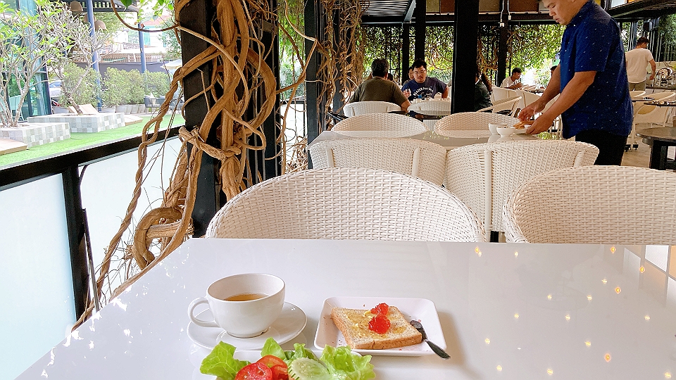 そこからいつもの朝食屋へ出かけると、今日は休みだった。だったらホテルのレストランで野菜を大量に食べる手だ。なお僕は、南の国では外の席を好む。責任者らしい男の人は、頭上の大きな扇風機を回してくれるなど、いろいろと気を遣ってくれた。そしてその席には11時20分までいて、ずっと本を読んだ。