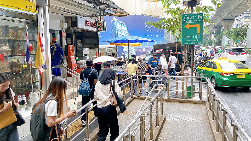 エアポートレイルリンクをマッカサンで降りて、地下鉄MRTのペチャブリーを目指してスカイウォークを往く。首都の天気は雨。傘は持参していない。地下鉄MRTのスクムヴィットからは、高架鉄道BTSのアソークまで地下道を歩く。