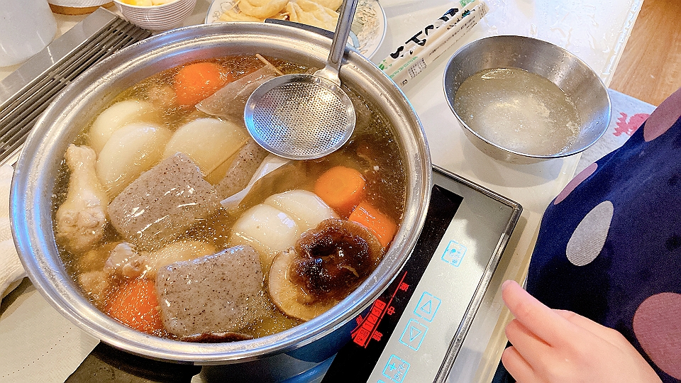 16時30分から17時のあいだに四階へ行くと、孫のリコが踏み台に乗って米を研いでいた。その慣れた手つきに大いに驚く。彼女は引き続いて、おでんの鍋の灰汁を掬い始めた。ちなみに僕は、玉子の殻を割るについては、もはや彼女には敵わない。