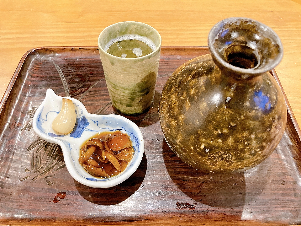 晩飯 「シンスケ」のあれや、これや、それや、他あれこれ、「両関」の樽酒(燗)