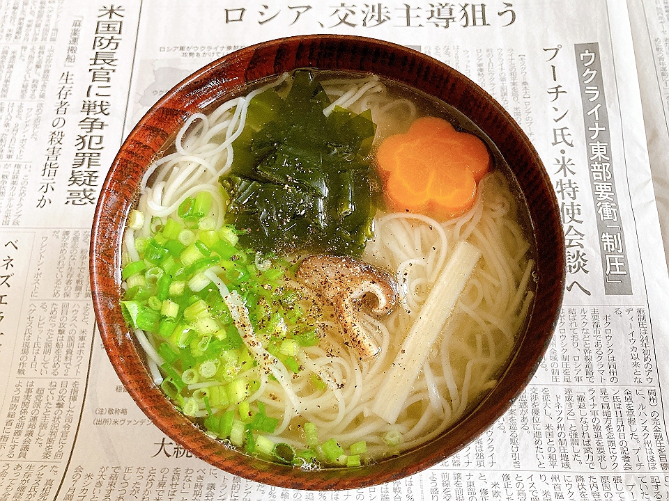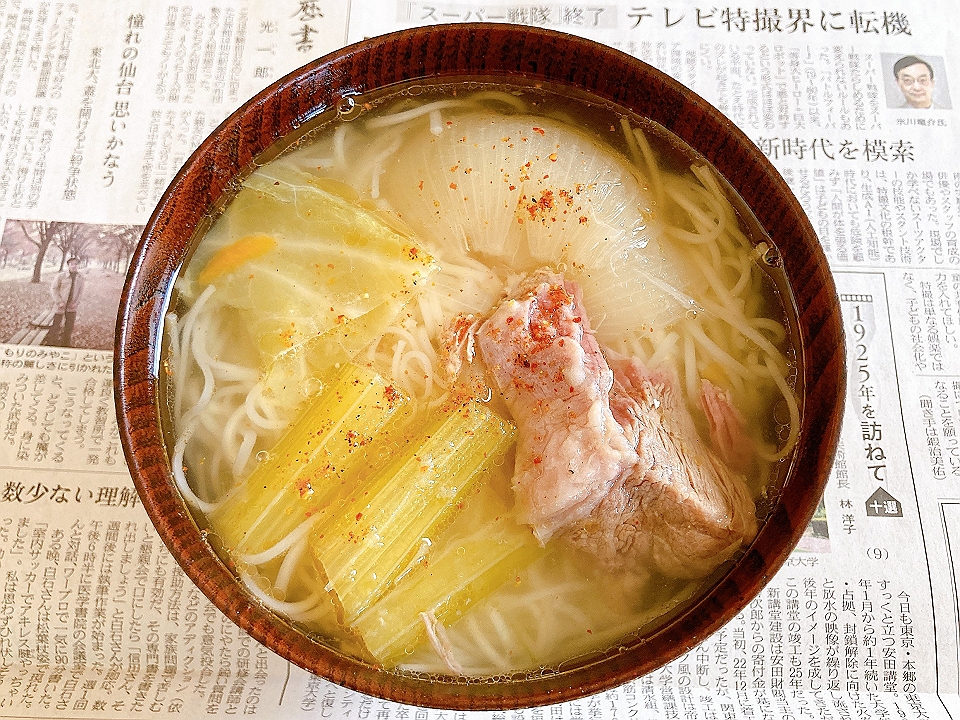 今朝は、隠居で収穫された梅を砂糖に漬けた8リットルのガラス瓶を提げているため、不凍栓を開けてもそのままきびすは返さず、柴折り戸から庭に入って勝手口への飛び石を伝う。木々の梢はいまだ明けない空を背にして、おしなべて墨一色に見える。ちなみに今日の「汁飯香の店 隠居うわさわ」は、午前に10名様、午後も10名様の満席をいただいている。