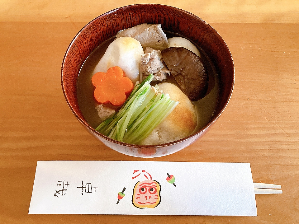 7時すぎに四階の食堂に家族八人が集まり、孫などを引き連れて、前述の五ヶ所に雑煮を供える。それから皆で雑煮を食べる。8時を回ったところで、きのう嫁のモモ君が調えてくれた福袋をホンダフィットに積む。そして僕はそのクルマを運転し、長男と孫のシンは徒歩で道の駅「日光街道ニコニコ本陣」へ向かう。