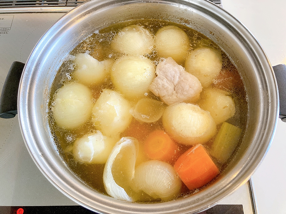 晩飯 ドライ生ハム、チーズ、らっきょうのたまり漬「小つぶちゃん」、TIO PEPE、トマトとレタスのサラダ、二種のパン、ポトフ、Chablis Billaud Simon 2018