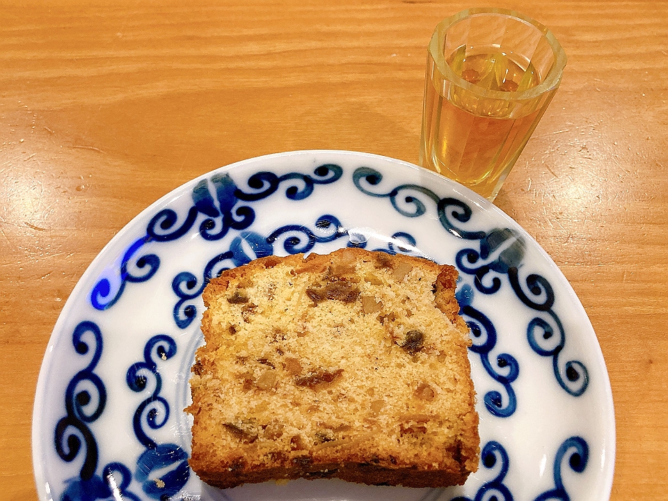 晩飯 菠薐草の胡麻和え、鮭の「日光味噌のたまり浅漬けの素・朝露」漬け焼き、白菜漬け、ゴボウと人参のきんぴら、茹でたブロッコリーを添えた鶏の照り焼き、五目おこわ、「山本合名」の山廃純米「天杉」(燗)、パウンドケーキ、Old Parr(生)