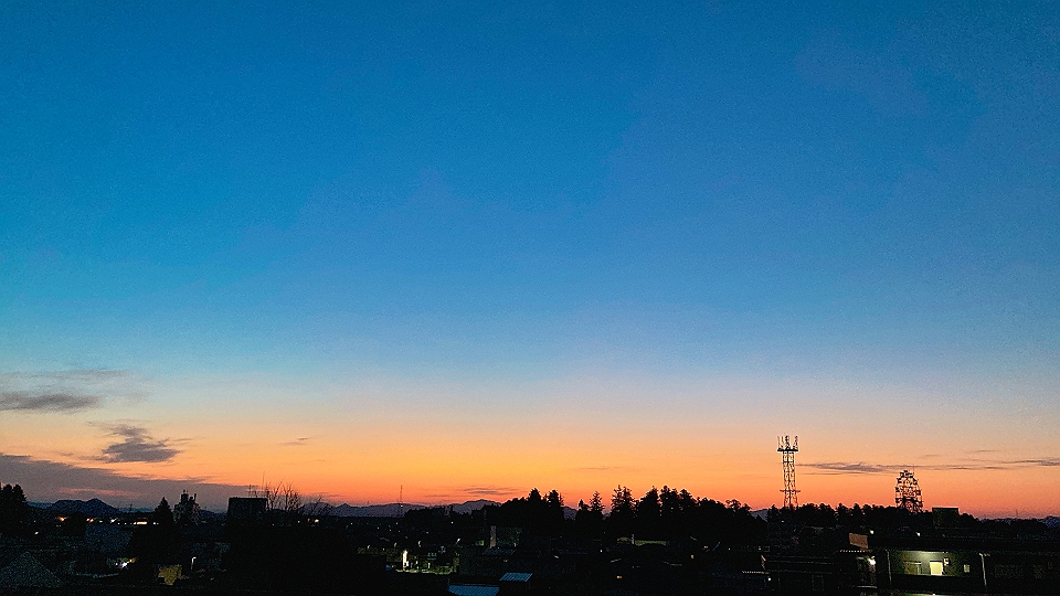 週に何度かすることだが、今日も夜の明けるころに屋上へ上がる。南東の空はいつもながら美しい。そしてきびすを返すと驚いたことに、それがそこにあるとは予想もしなかった朝の月が、西の空に大きく浮かんでいた。