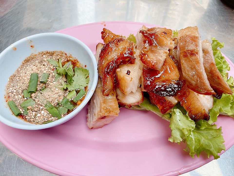 取りあえずはシンハビールと海鮮サラダを注文する。2本目のビールと共に、今度は豚の首肉の炙り焼きを追加する。それにしても、この店の炙り焼きは、これまで食べたどこのものよりも美味かった。出色の出来である。5月には裏を返すことにしよう。料理ふた品とビール2本の代金は410バーツだった。