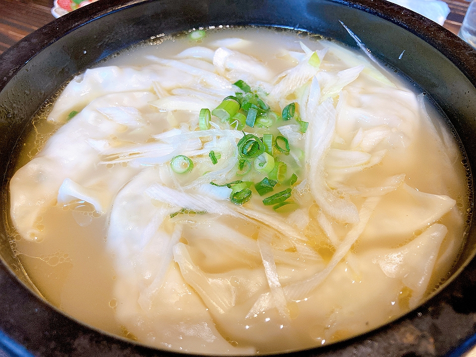 晩飯 「ユタの店」の餃子、チャーハン、「菊の里酒造」の「大那生貯蔵酒特別純米」(冷や)、サービスの杏仁豆腐