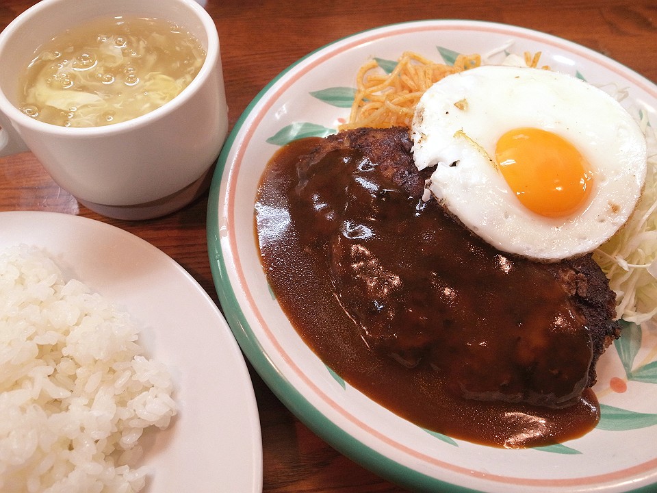 昼飯 「街のハンバーグ屋さん」のデミたまハンバーグ(160g)定食