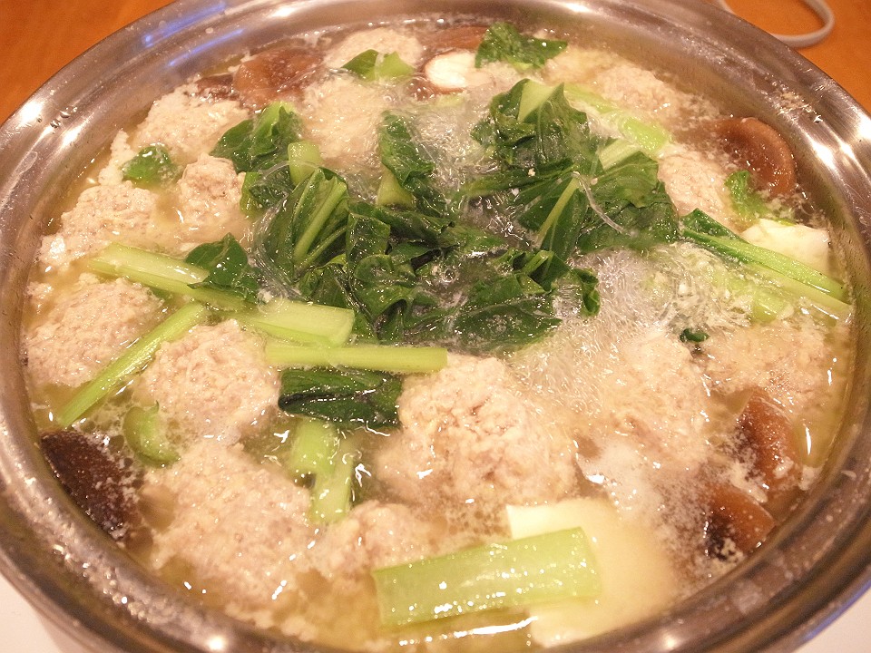 晩飯 鶏肉団子の鍋、「本沢屋」の2種の団子
