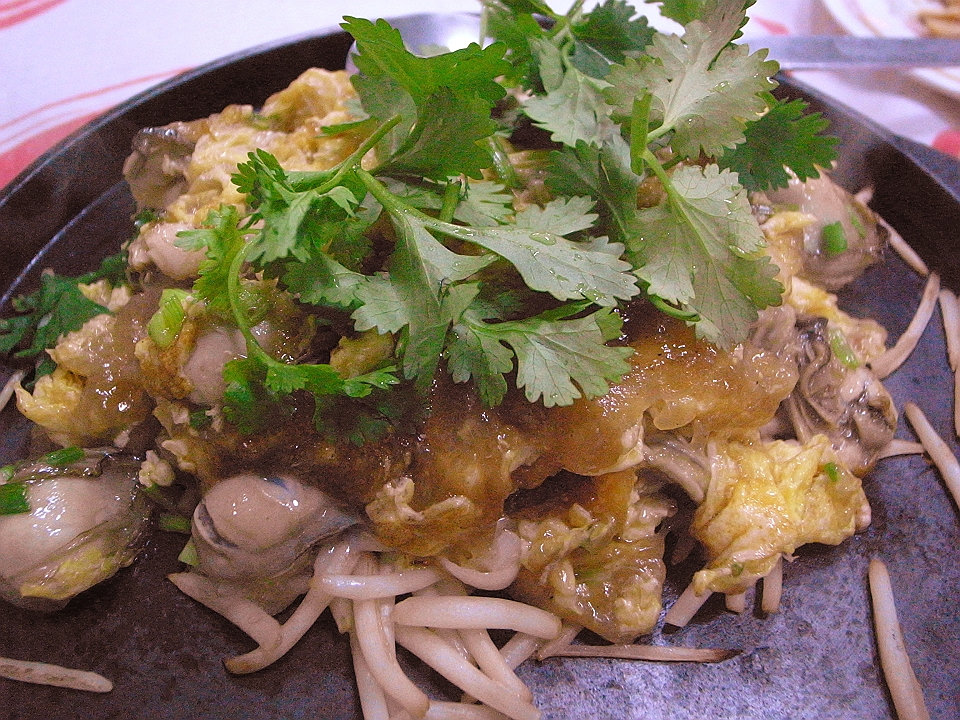 何年か前にコモトリ君と散歩をしながら目に留め、以来、気になっていた店の階段を上がる。料理が目の前に運ばれてみれば、そしてひとくち食べてみれば、調理の技術はとても高い。しかし店の内装は古色蒼然を通り越して、むしろうらぶれている。客のためのテーブルのうちの2客には様々なものが置かれ、家族と従業員のものとして使われている。また客席の一角は飲物などのための物置になっている。「惜しいなぁ」とは思うが、人の好みは色々だ。「ラオス出身の20歳、旦那は40歳の運転手」というお運びのオネーサンにコモトリ君が訊ねたところ「混んでくるのは19時から」とのことだった。