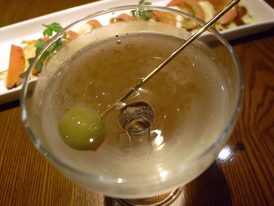 晩飯 「コスモス」のトマトとモッツァレラチーズのサラダ、チーズオムレツのカレーライス、ドライマーティニ、TIO PEPE