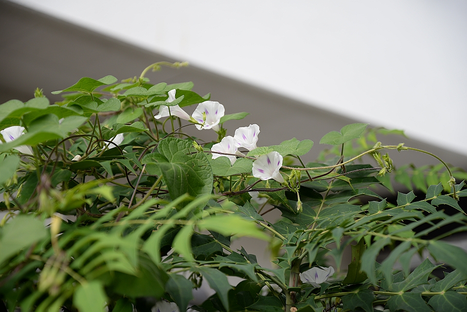 ところでマルバアサガオが、坪庭のヒイラギの高いところまではびこっていることには、数日前から気がついていた。7月31日の日記には、この花を好きと書いた。しかしそれは、竹垣に可憐に花を咲かせている限りにおいてのことだ。よってヒイラギに巻き付いたマルバアサガオは、その蔓の先端から地面までを辿り、すべて駆除する。