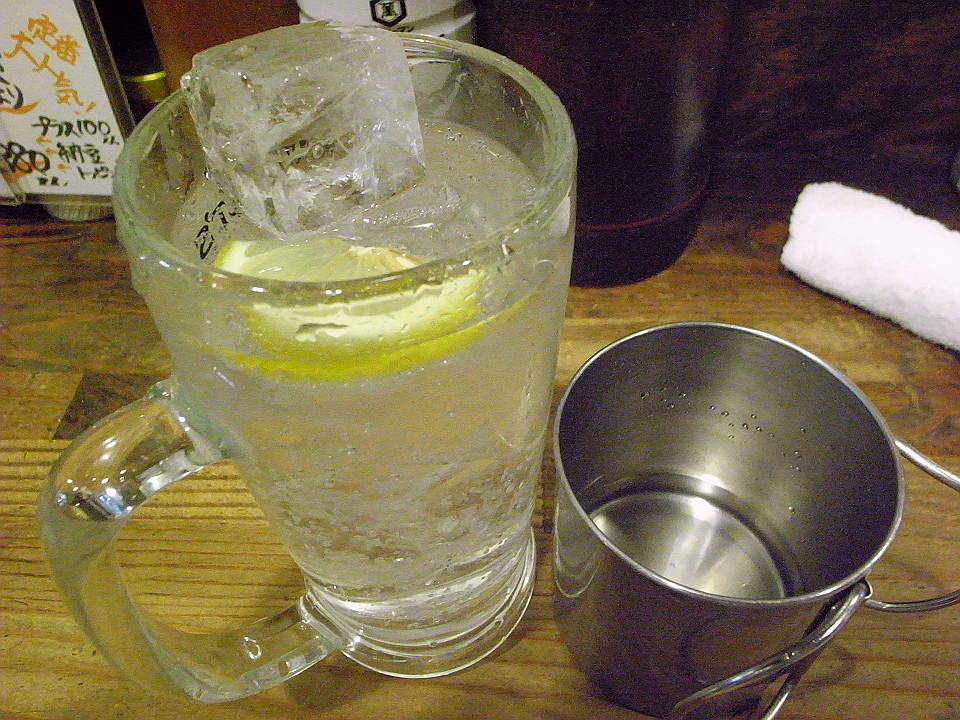 晩飯 「おとんば北千住店」のトマトのマリネ、レバ刺し、チューハイ、それを濃くするための「ナカ」、「加賀屋北千住店」のあれこれ、チューハイ