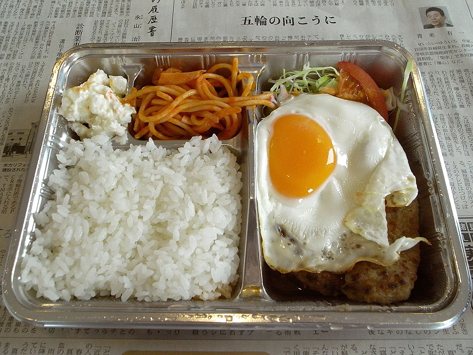 昼飯 会社支給による「コスモス」のハンバーグデミグラス弁当