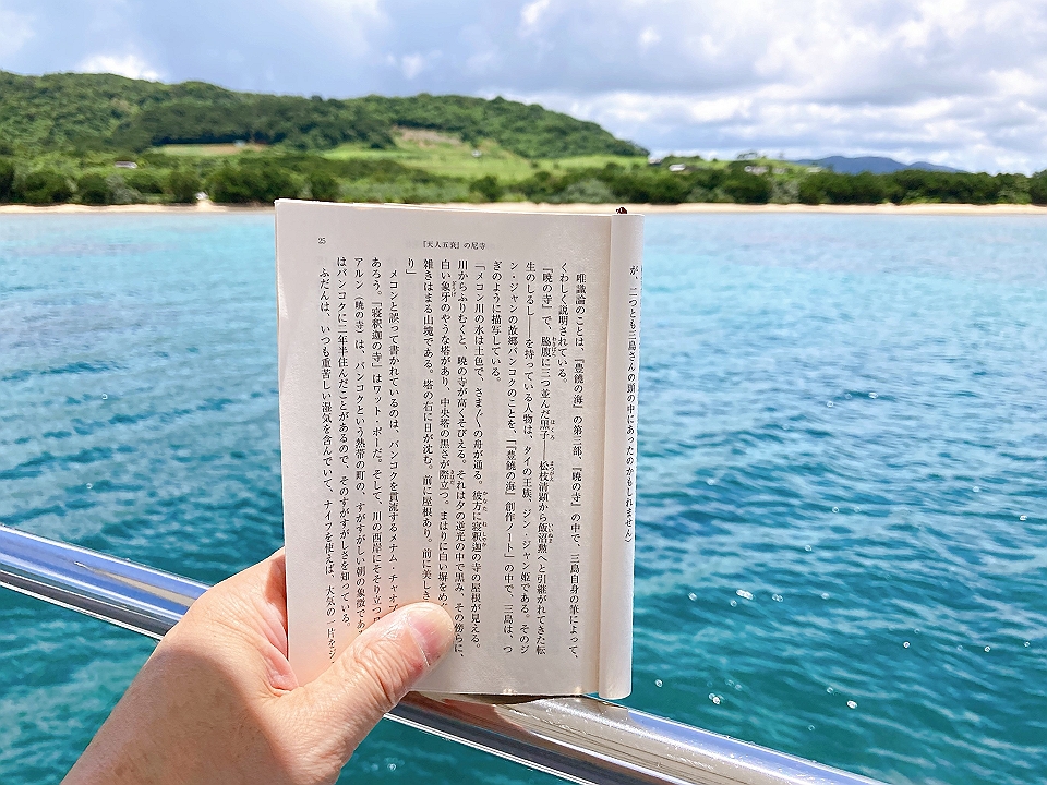 11:45 大崎ハナゴイリーフポイントに碇泊。水深は5から10メートル。僕は家内とは異なって、スキューバダイビングはしない。今回、船に乗せてもらったのは特例かも知れない。ポイントでは船長も客を先導して海に潜る。船の上には僕ひとり。本を読むには、この上ない環境である。