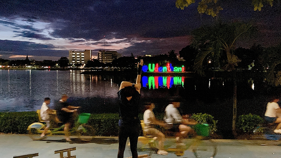 18時を過ぎたウドンタニーには夕刻の色が濃い。「センタン」の前の路上には、いつもおなじトゥクトゥクが駐まっている。そのオジサンに、これまたiPhoneに保存したチムジュム屋の画像を見せる。オジサンの言い値は80バーツ。目指す人工池のほとりには、10分と少々で着いた。