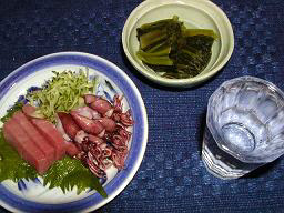 生きた白魚、小イワシの刺身、ヒラメの刺身 などなど、写真を撮っているといつまでも料理に箸が付けられないほどのご馳走を供してくれる。この町にある相原酒造の 「雨後の月」 は、上出来の酒だ。