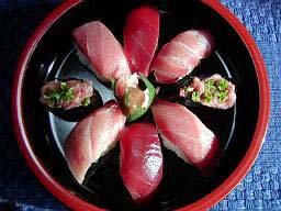 次男には好物のマグロづくしが、そしておとなにはそれなりの鮨が割り当てられる。酒を伴わない鮨は自分にとってちと物足りないため飲酒を為すことも考えたが、今月はあと1日の断酒をする必要があるため、今日をその日に充てることとし、ワカメと万能ネギの吸い物のみを飲む。