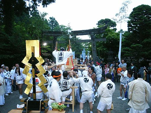 高お神社の水と瀧尾神社の水を合わせる「水合わせの儀」から始まった儀式が稚児による水まきにより無事に完了するころ、あたりは夏の闇が訪れていた。複数の神社が協力してお祭りを行うとは、全国にも例のないことだという。