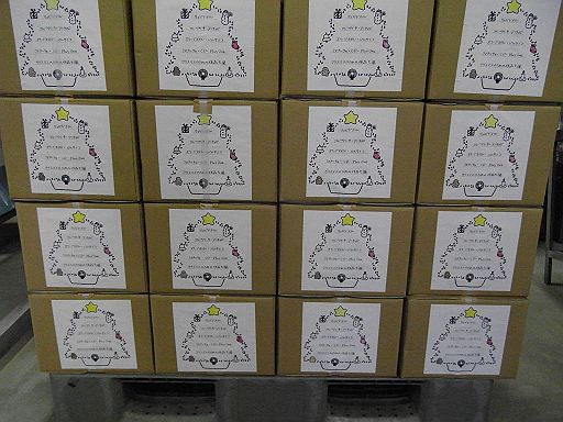 この「クリスマスはいつも家で愉しむ派、のための佳品七選」が、製造係のアオキフミオさんとフクダナオブミさんにより梱包され、次々とパレットに積まれていく。これにはフルーツケーキとフォカッチャ、ミニパンという柔らかい品物が入っているため、その荷造りは想像以上に難しく、僕はひと箱を組み立てただけで戦線から離脱した。まぁ、餅屋は餅屋である。