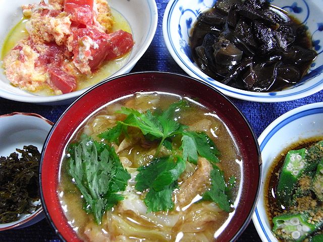 今日の午後はウチの隠居で課題の発表をし合い、場所を移さず打ち上げに入るという。そのため家内は夕刻よりあれこれ酒肴の用意をし、我々は夜7時30分にそれらを隠居へ運んだ。勉強会はいまだ続いていた。
