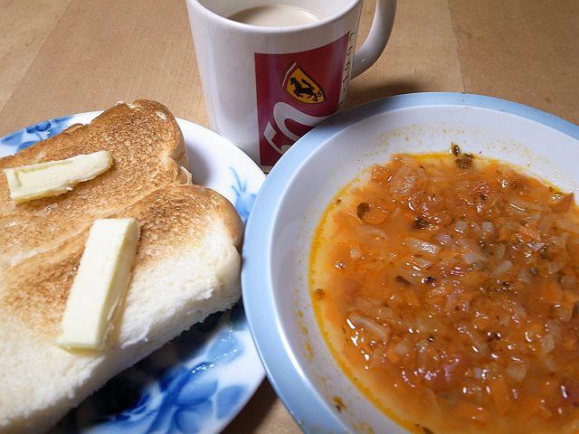 本日午前に帰宅して「そういうとき、なんで長男のことは思わないかね」と家内に訊いたところ、長男はひとり暮らしをしているから自炊するにしろ他所で食べるにしろ自由自在だ、しかし次男は寮で暮らしているから、そして寮の食事はよく考えられているにしても、決まった献立のものを食べなくてはならない、そういうことが頭の片隅にあるから、自分がひとり気楽に食事をしているときには次男のことばかり思い浮かぶのだ、というようなことを答えた。まぁ、そうなのかも知れない。